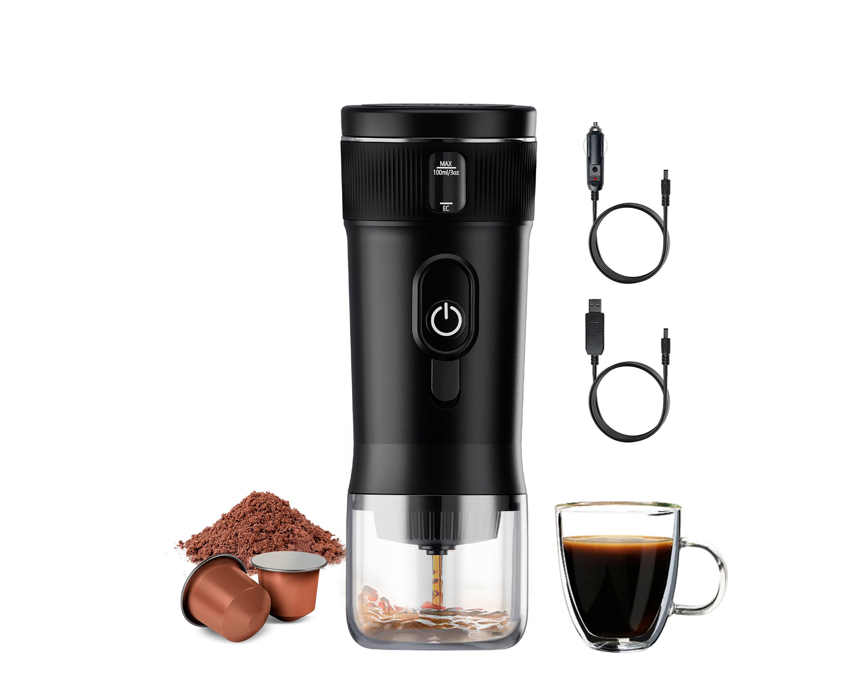 Option 2: Use the car cable, add cold water, and press and hold the power button for 3 seconds to begin brewing.